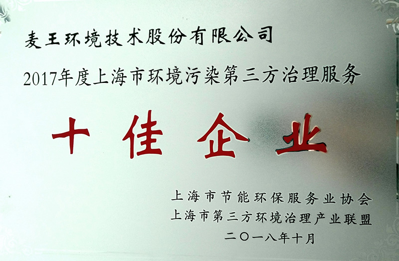 FH(中国)环境喜获上海市环境污染第三方治理服务十佳企业荣誉称号!