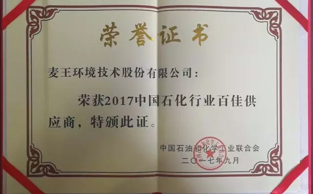 FH(中国)环境荣获石化行业百佳供应商称号,入选环保类十佳企业