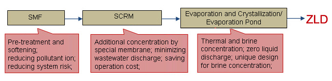 The unique feature of ZLD treatment process is to concentrate the liquid as much as possible via membrane technology before evaporation. Hence higher recovery before evaporation and lower operation cost of evaporation. McWong's SCRM uses specially designed structure of vibrating membrane module which amplifies shearing force on membrane surfaces and increases fluid passage, thus achieving super high concentration before liquid is discharged to evaporation pond or goes to downstream evaporator and / or crystallizer for further treatment.