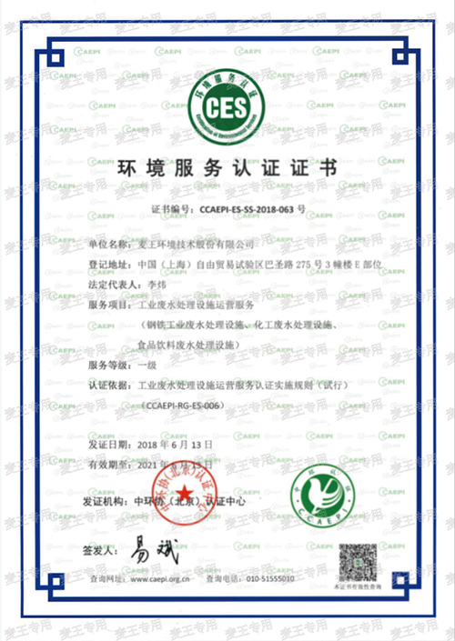 First class qualification of industrial wastewater operation |