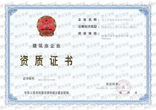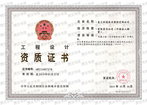 Grade B qualification of environmental engineering design |