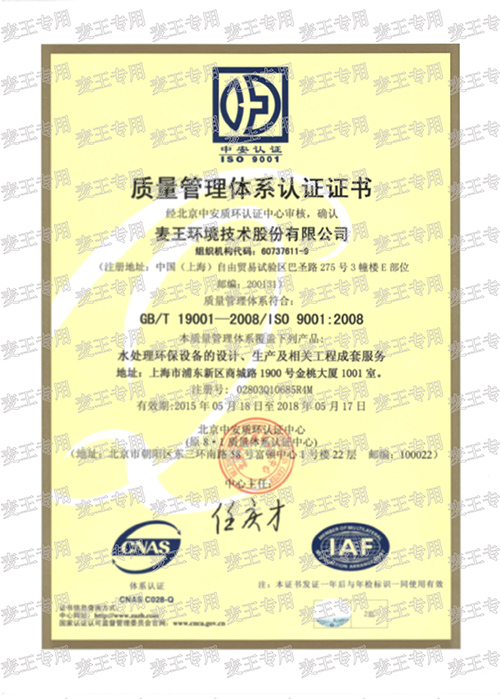 ISO 9001 quality management system certification |